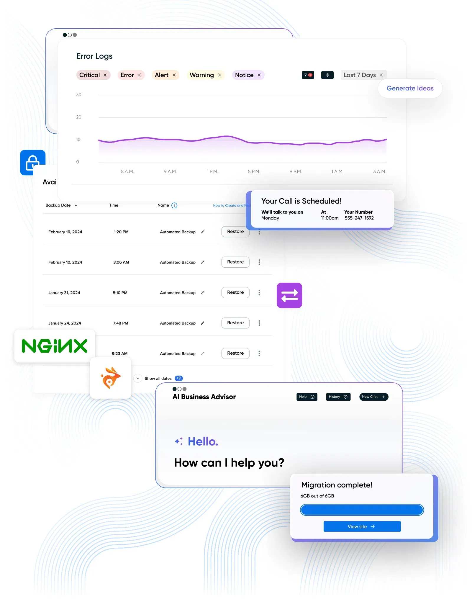 Plan, write, and grow smarter with our built-in AI suite—Business Advisor, Content Builder, and Business Planner.